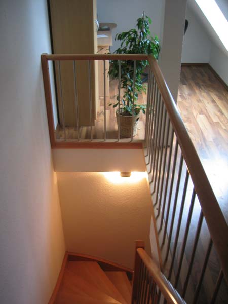Auch hier gibt es verschiedene Treppenvarianten, Geländerformen und etliche Gestaltungsmöglichkeiten sind geboten.