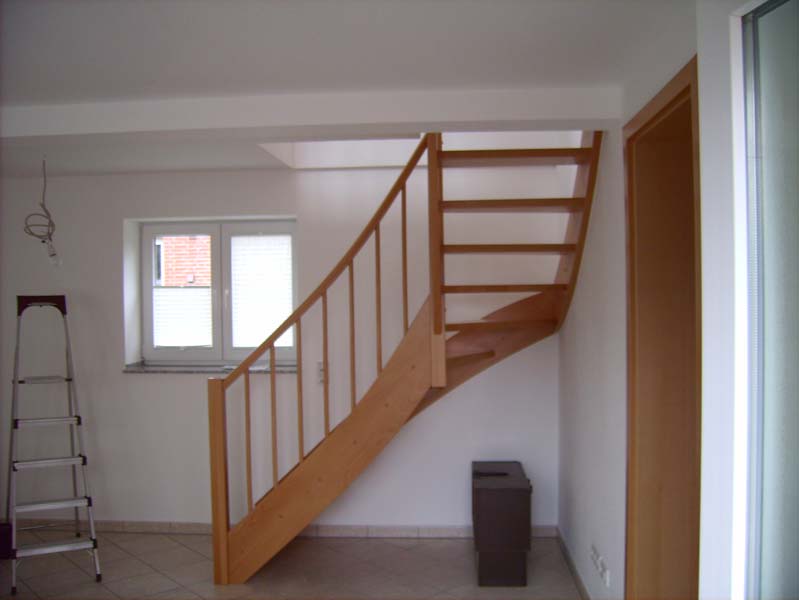 Treppen stellen wir aus Massivholzbohlen gewendelt oder gerade, mit oder ohne Stoßtritte sowie wahlweise mit gedrechselten Treppenstäben oder Edelstahlstäben her.